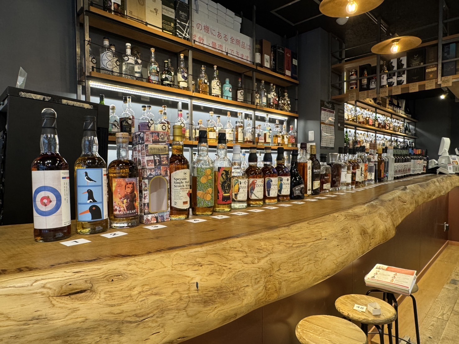 当日のカウンターには定番品、限定品併せて50本近くのスピリッツが揃い踏み。