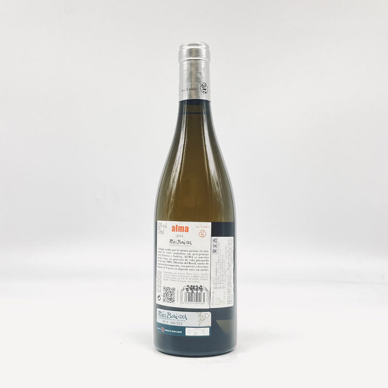 収穫日は9月24日、26日、27日。収量は48 hL/ha。ワイン名のAlmaはスペイン語で「魂」という意味がある! リアス・バイシャス地方とキリスト教の最終巡礼地サンティアゴ・デ・コンポステーラは同じガリシア州にあり、エチケットのホタテ貝のデザインは巡礼地のシンボルを示す!SO2はプレス後とマロ終了後、そして瓶詰前に少量添加。軽くフィルター有り。