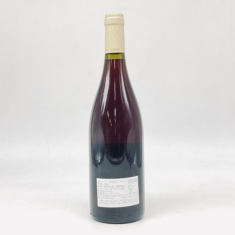 収穫日は9月20日とブドウが晩熟だった!収量はミルデューと鳥の被害により15hL/haと大幅減収だった!買いブドウはビオ生産者フィリップ・ビュグレから!SO2は熟成後のスーティラージュの時に15㎎/L添加。ノンフィルター!