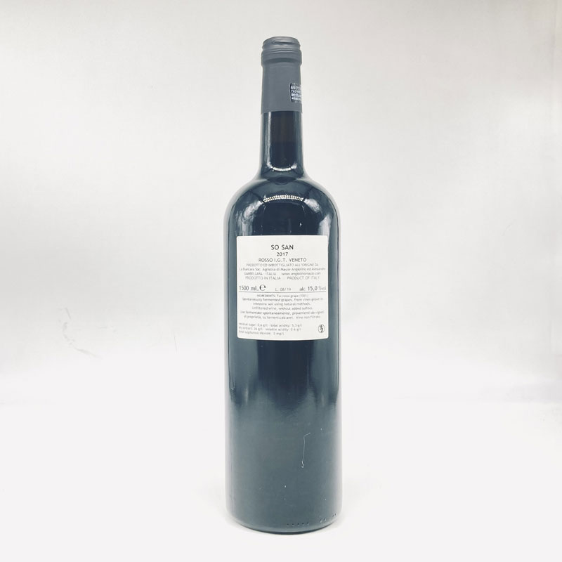 ソ サンは、ワイナリーから20kmほど離れたコッリ ベーリチに取得した畑のトカイロッソ(タイ ロッソ)で作られる赤。畑がSossanoソッサーノというゾーンにあることと、Sono sano(私は健康です)の2つの意味を合せて名付けられた。(『ソ サン』という名では2006年から(トカイロッソという名では2003年から)リリースされている。)