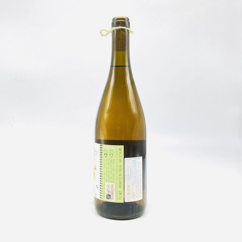 9月中旬に手摘みにて丁寧に収穫後、軽くプレスを行い10日間のマセレーション。セメントタンクにて自然酵母にて発酵を開始します。発酵後、自然な澱下げの後、ステンレスタンクとセメントタンクへと移し替えのタイミングで、大まかな澱を取り除きます。その後翌年4月にボトリング。醸造・熟成の工程では、温度コントロール、亜硫酸を含む添加物の使用、フィルター・清澄などは一切行いません。