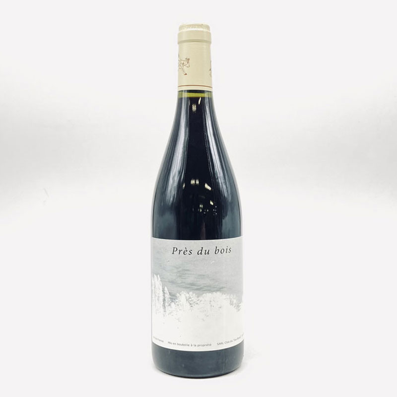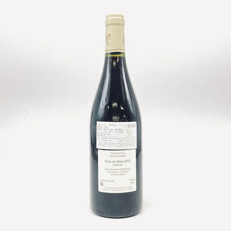 収穫日は9月19日とブドウはやや早熟 だった!収量は豊作で30hL/ha。ブドウ はこの年(2022)に取得したル・ブラン・ ド・シェーヴルに隣接する0.6haのビオの 自社畑から!ワイン名は畑が雑木林に 隣接していることからPr?s du Bois(林 の近く)と名付けた!エチケットのデザ インは隣接する林の写真のネガフィル ムをそのまま利用している!SO2無添 加!ノンフィルター!