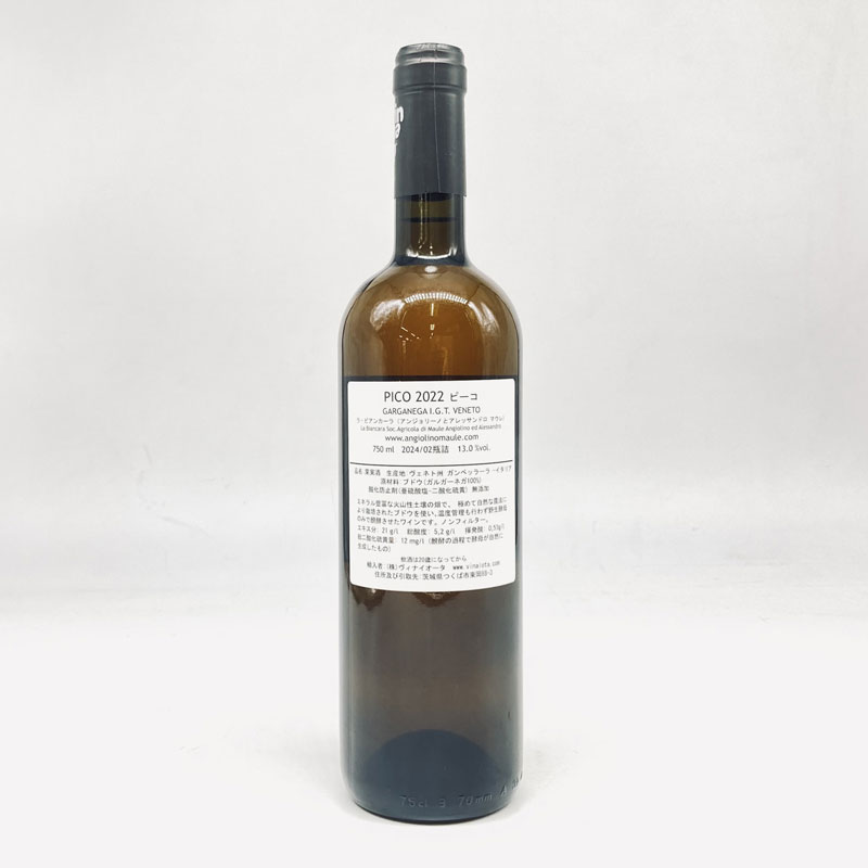 Picoはこの辺りの言葉で、“斜線の上部の点”を指し、そこから“最高のもの”という意味も持つようになった言葉。その名の通り彼らの白ワインのトップキュヴェに名付けられている。 ピーコに使われているガルガーネガは、標高250mにあるタイバーネ、ファルデオ、モンテ ディ メッツォという3つの区画(クリュ)のもの。クリュごとにボトリングすべきと判断した年は、先にピーコ クリュとして区画ごとにワインをボトリングした後にブレンドし、落ち着かせて澱が沈んでからボトリングしたものをピーコとしてリリースしている。 ガルガーネガという品種は長期のマセレーションに向かないと考えているため、マセレーションの期間は年によって変わるが最長でも4~5日間。15リットルの大樽で12ヶ月間熟成。濾過・SO2無添加でボトリング。